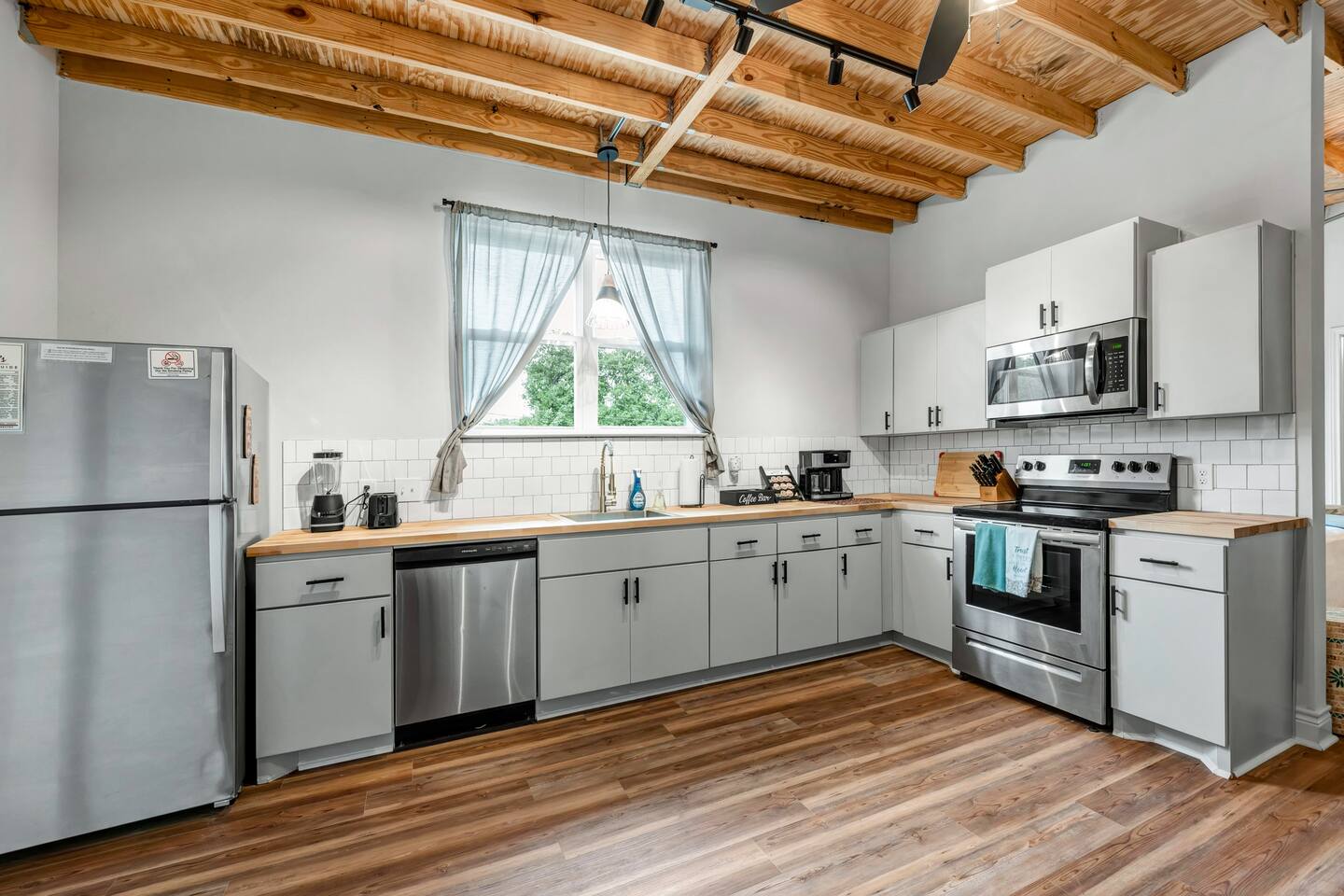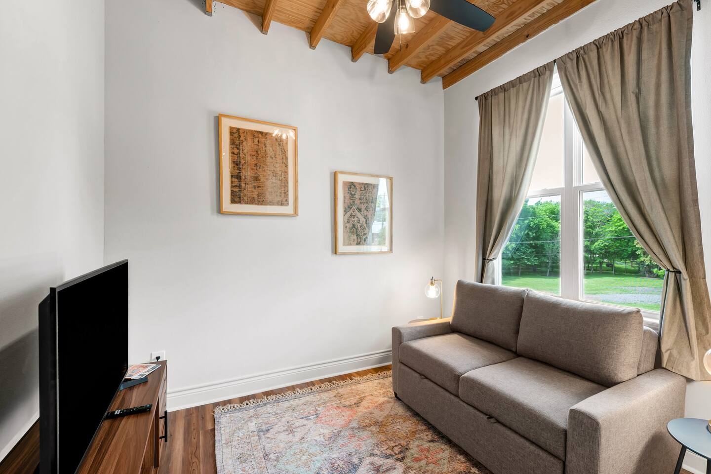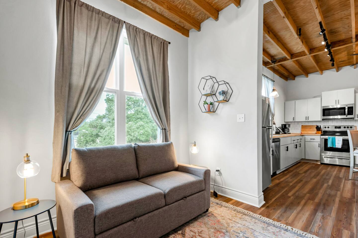 This is a second floor apartment with stair access only. The couch opens to a full-size bed. Easy walking distance to downtown and the historic Kyle House, home of Polite Coffee company with its coffee uniquely roasted in Bryan. Together with The Hideaway and The Magnolia Bloom apartments a family could have the entire second floor landing to themselves. A fully equipped kitchen and an in-apartment washer and dryer make this more than a sleepover. The TV has Netflix, Hulu Live, Disney Plus and even ESPN for when you just feel like relaxing as well. Pack N Play available upon request. There is a "quiet zone" plan in place set by the city of Bryan for the train nearby. Occasionally, trains passing through may be loud. We offer white noise machines to mitigate the sound.