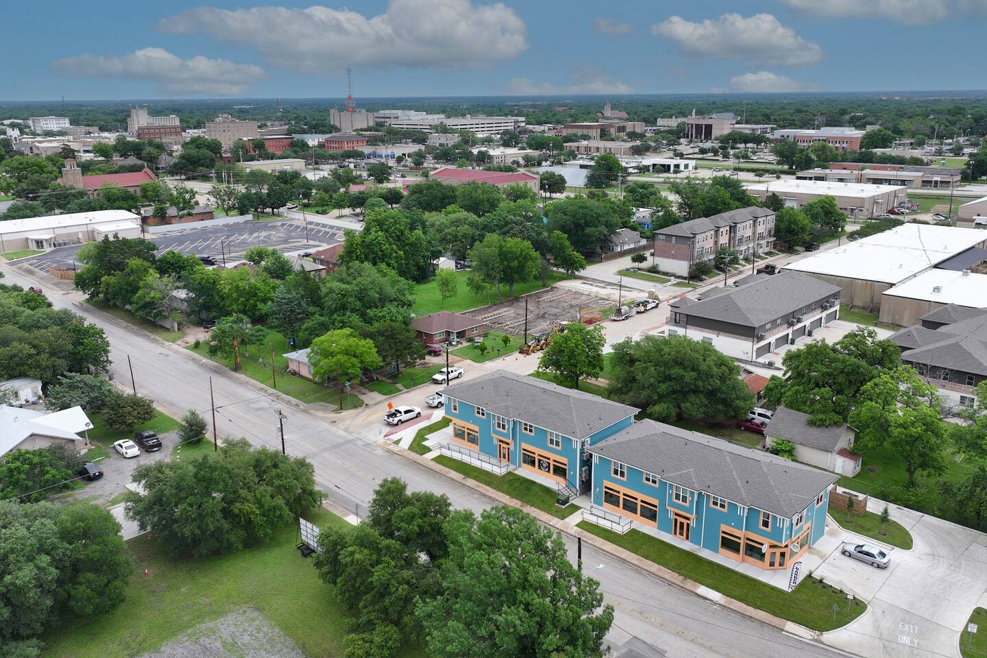 Easy walk to downtown Bryan, two blocks from the historic Kyle House, across the street from the Cottonwood Creek Event Center. Barber Shop and Day Spa in the building.